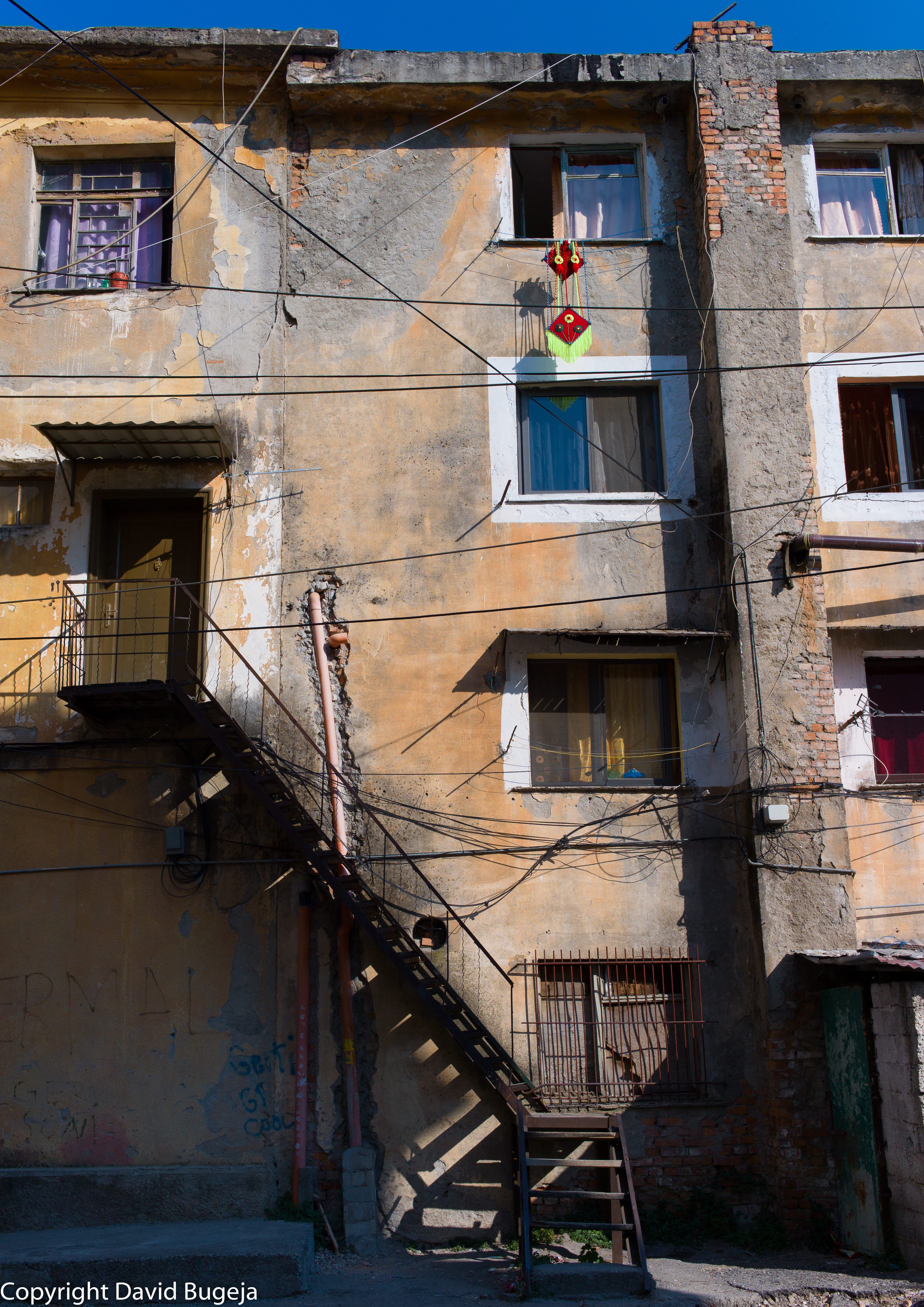 And if I had my own property and was tied down to it, I probably would never have had the time and opportunity to wander about these little streets of Shkodra and discover how someone else had chosen to live differently and taken the plunge and erected this house and the wire cobweb and so forever keeping everything else out of his life.
